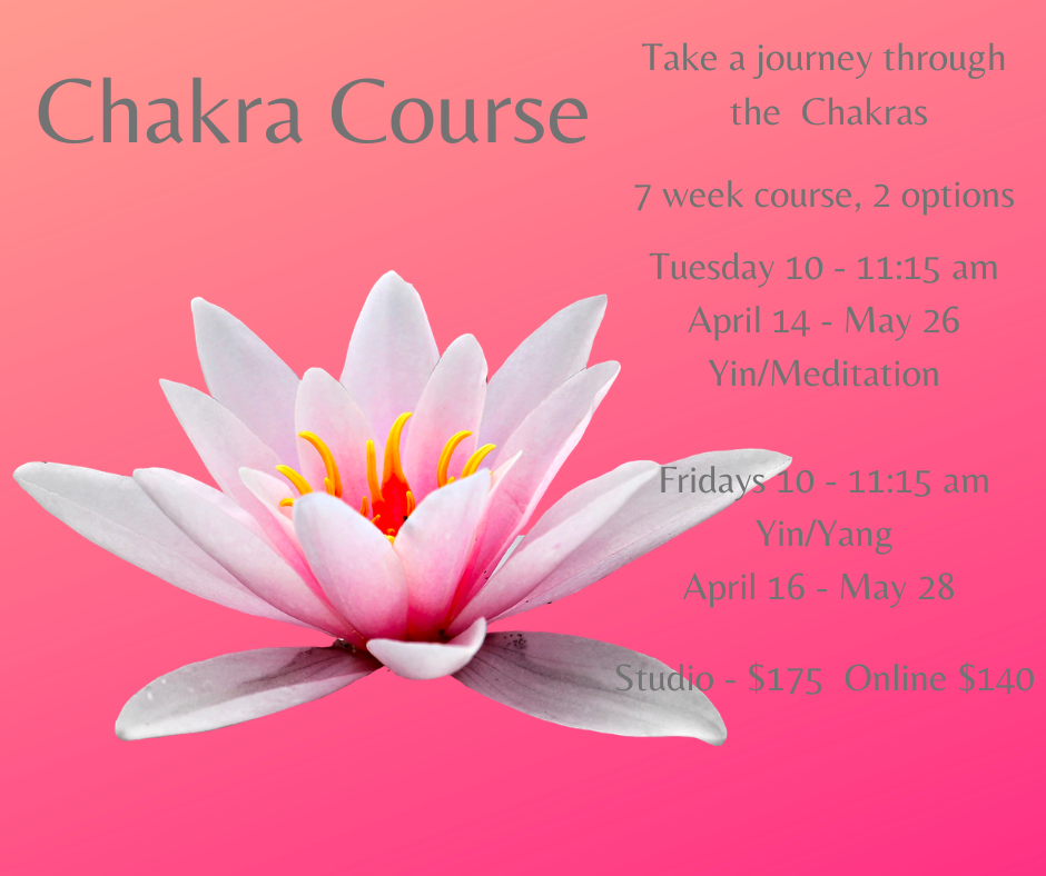 Our chakras are the energetic wheels or centers within our pranic body which govern and energize different parts of our physical, mental and emotional bodies. Being part of our energy body our chakras can become depleted and out of balance. In this 7 week course, each week we will focus on one of the chakras offering asana (poses), mantra and breathwork to bring each energy center back into a place of balance and harmony. With the fast moving energy of the year we are in, these practices for balancing and integrating our energies become invaluable. There are two different options for this course, either Yin or a combination of Yin and Yang. Hope to see you on the mat for what will be a rejuvenating 7 weeks.