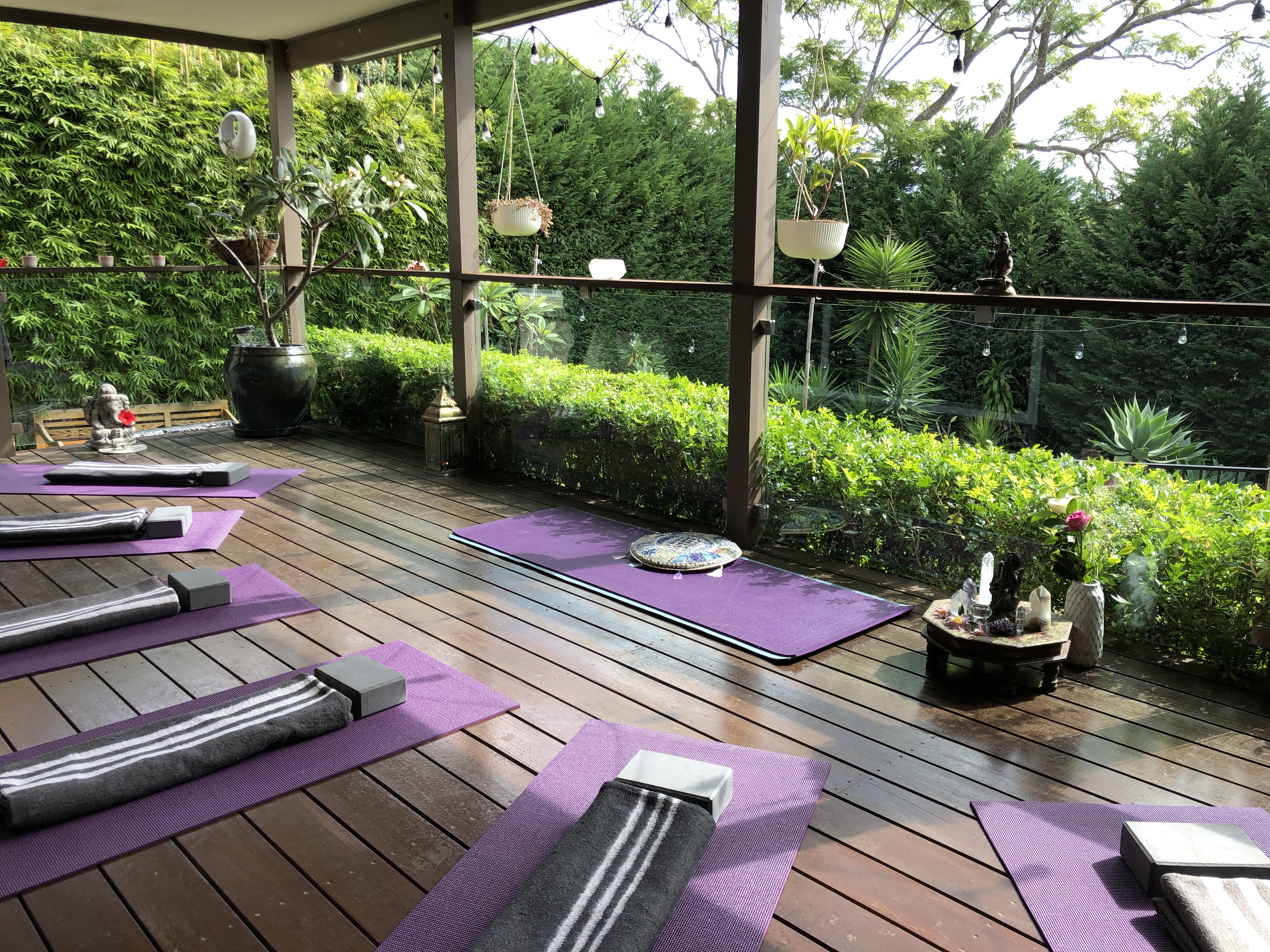 It’s an oasis with a dark wooden deck, bamboo backdrop and her fluffy bunny Honey, who even munches on carrots with the energy of a goddess. When you find a yoga teacher you connect with, it’s always worth the wait‘.